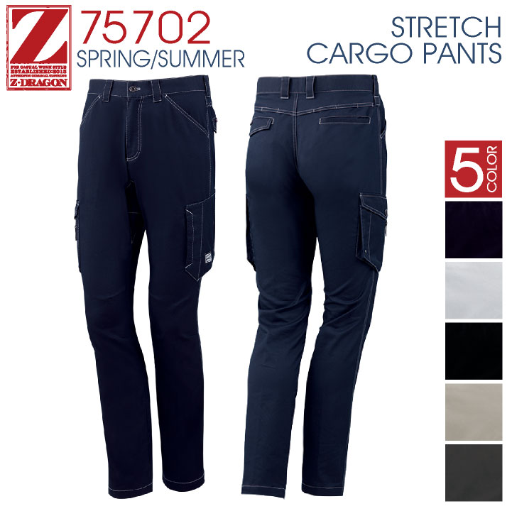カーゴパンツ ストレッチ 作業ズボン 作業着 作業服 ワークパンツ メンズ パンツ ズボン ノータック おしゃれ ミニヘリンボン Z-DRAGON 自重堂 春用 夏用 jd-75702-b